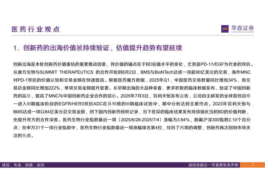 1. 创新药的出海价值被持续验证,估值提升趋势有望延续