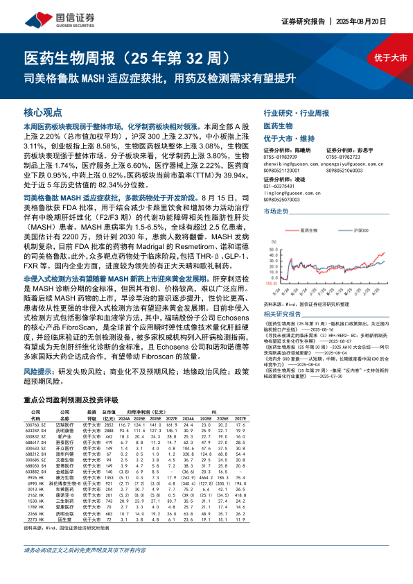 医药生物行业周报(25年第32周):司美格鲁肽MASH适应症获批,用药及检测需求有望提升