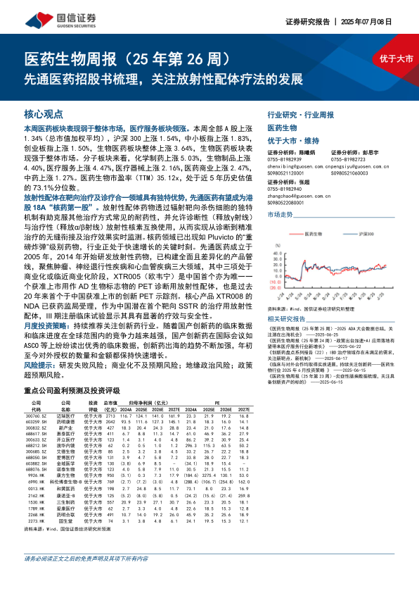 医药生物周报(25年第26周):先通医药招股书梳理,关注放射性配体疗法的发展