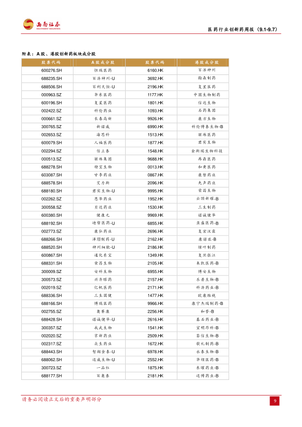 风险提示:药品研发进程不及预期的风险、药品临床结果不及预期的风险等。