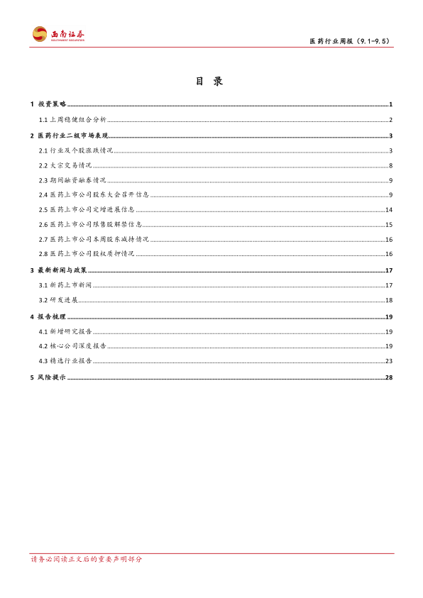 风险提示:医药行业政策不确定性超预期风险;研发进展不及预期风险;业绩不及预期风险。