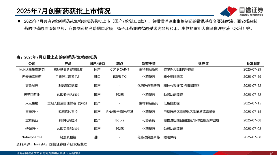 医药生物行业2025年8月投资策略:关注创新药产业链以及估值合理的器械标的