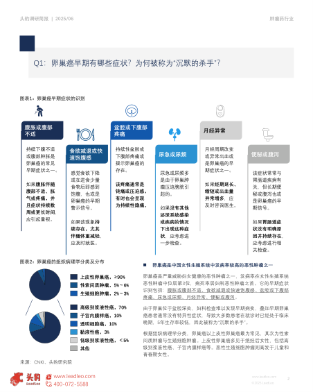 由于卵巢位于盆腔深处,妇科检查难以发现早期病变,叠加早期卵巢癌患者通常没有特异性症状,导致大多数患者在就诊时已经处于临床晚期,5年生存率较低,因此被称为“沉默的杀手”。