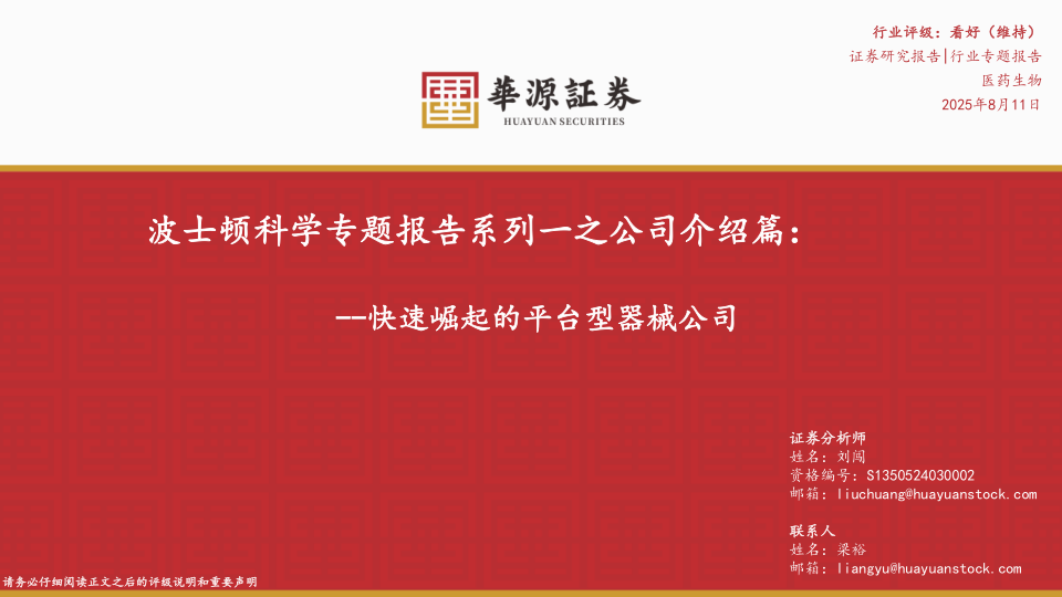 医药生物行业专题报告:波士顿科学专题报告系列一之公司介绍篇:快速崛起的平台型器械公司