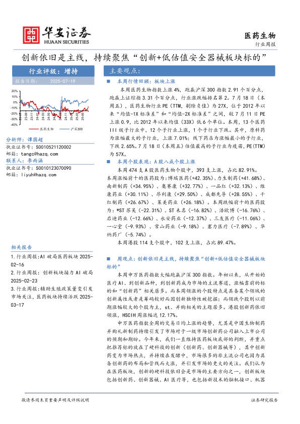 周观点:创新依旧是主线,持续聚焦“创新+低估值安全器械板块标的”