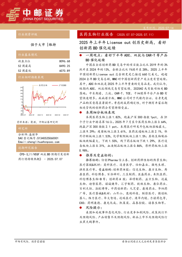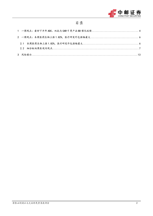 l一周观点:看好下半年ADC、双抗与CAR-T等产品BD催化延续