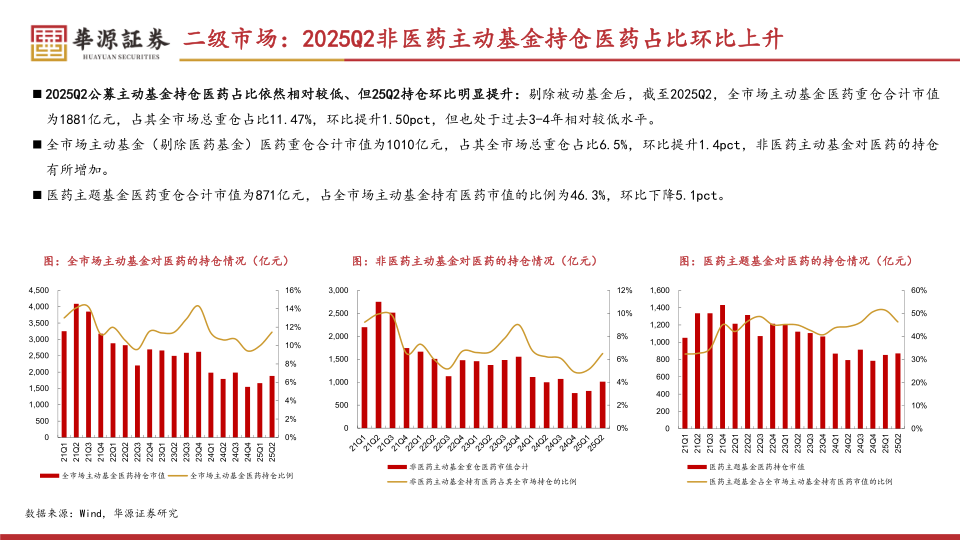 化药:2025H1化药公司共实现营收1980.57亿元,同比下降3.83%;共实现归母净利润221.39亿元,同比下降0.11%。细分领域表现不同,传统仿转创药企表现较好,如恒瑞医药、海思科、信立泰等。化药板块或进一步加速分化,有持续创新能力的药企有望中长期受益、脱颖而出。