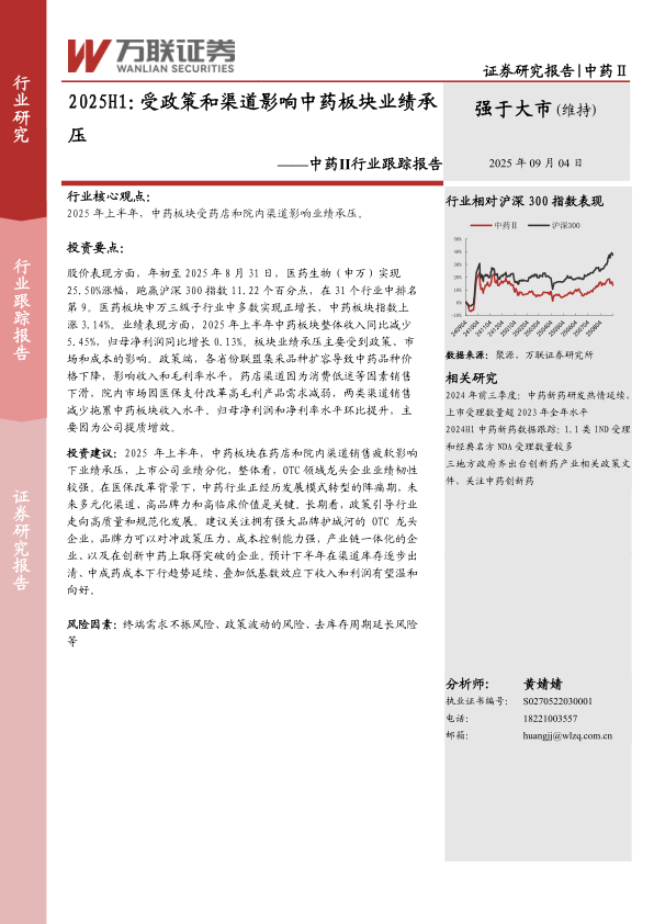中药Ⅱ行业跟踪报告:2025H1:受政策和渠道影响中药板块业绩承压