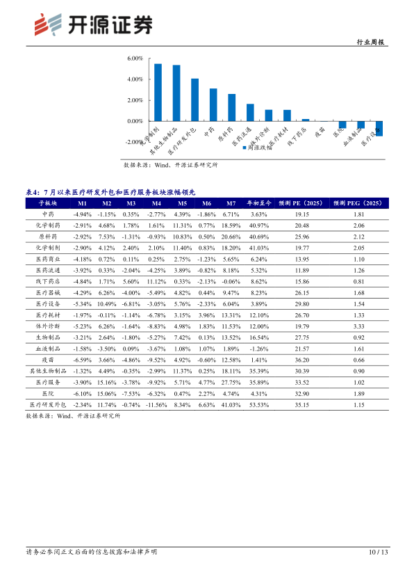 推荐标的:制药及生物制品:恒瑞医药、华东医药、三生制药、人福医药、恩华药业、信达生物、再鼎医药、百利天恒、泽璟制药-U、诺诚健华、科伦博泰生物-B、三生国健、康诺亚-B、一品红、海思科、艾力斯、艾迪药业、和黄医药、京新药业、健康元;CXO:药明康德、药明合联、泰格医药、药明生物、博腾股份、泓博医药;科研服务:毕得医药、百普赛斯、皓元医药、昊帆生物、海尔生物、奥浦迈、阿拉丁;中药:东阿阿胶、江中药业、天士力、济川药业、羚锐制药、悦康药业、方盛制药、佐力药业;原料药:普洛药业、健友股份、华海药业、奥锐特、博瑞医药;医疗器械:迈瑞医疗、联影医疗、开立医疗、澳华内镜、英科医疗、万孚生物、可孚医疗、圣湘生物、康拓医疗;医疗服务:爱尔眼科、通策医疗、美年健康、海吉亚医疗、锦欣生殖;零售药店:益丰药房。
