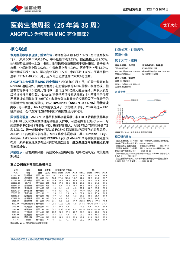 医药生物行业周报(25年第35周):ANGPTL3为何获得MNC药企青睐?