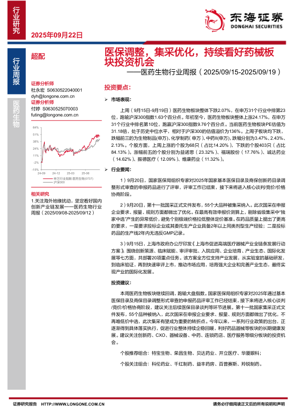 医药生物行业周报:医保调整,集采优化,持续看好药械板块投资机会