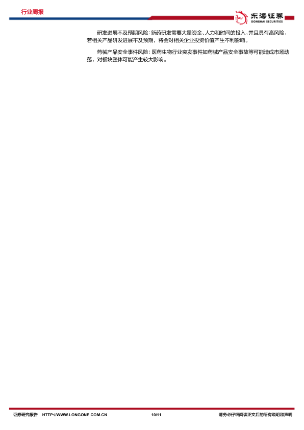 风险提示:行业政策风险;公司业绩不及预期风险;研发进展不及预期风险;药械产品安全事件风险等。
