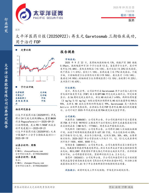 医药日报:再生元Garetosmab三期临床成功,用于治疗FOP