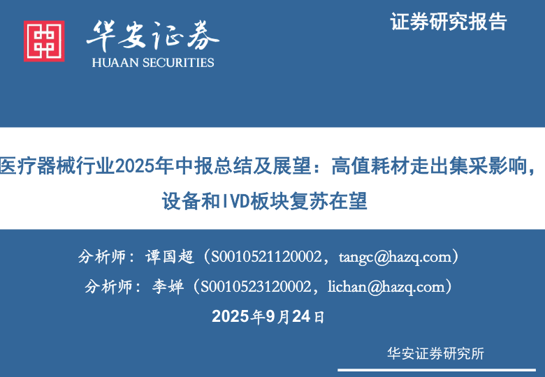 医疗器械行业2025年中报总结及展望:高值耗材走出集采影响,设备和IVD板块复苏在望