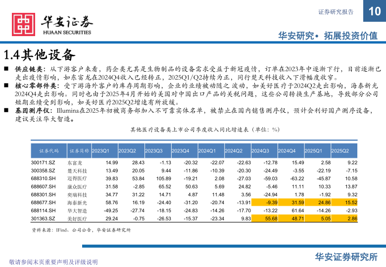 设备和IVD板块复苏在望:(1)设备板块:预计2025Q3设备公司的财务报表修复即能看到明显改善。(2)IVD板块:预计2025Q4即能看到部分公司有所改善,行业整体可能在2026H1见底回升。