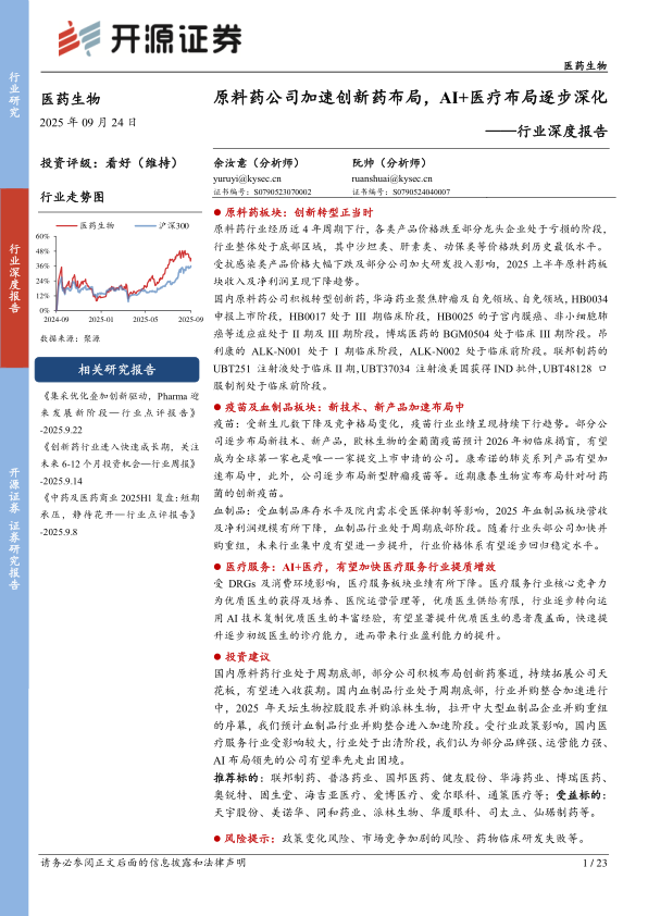 医药生物行业深度报告:原料药公司加速创新药布局,AI+医疗布局逐步深化
