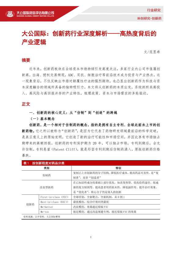 创新药行业深度解析——高热度背后的产业逻辑