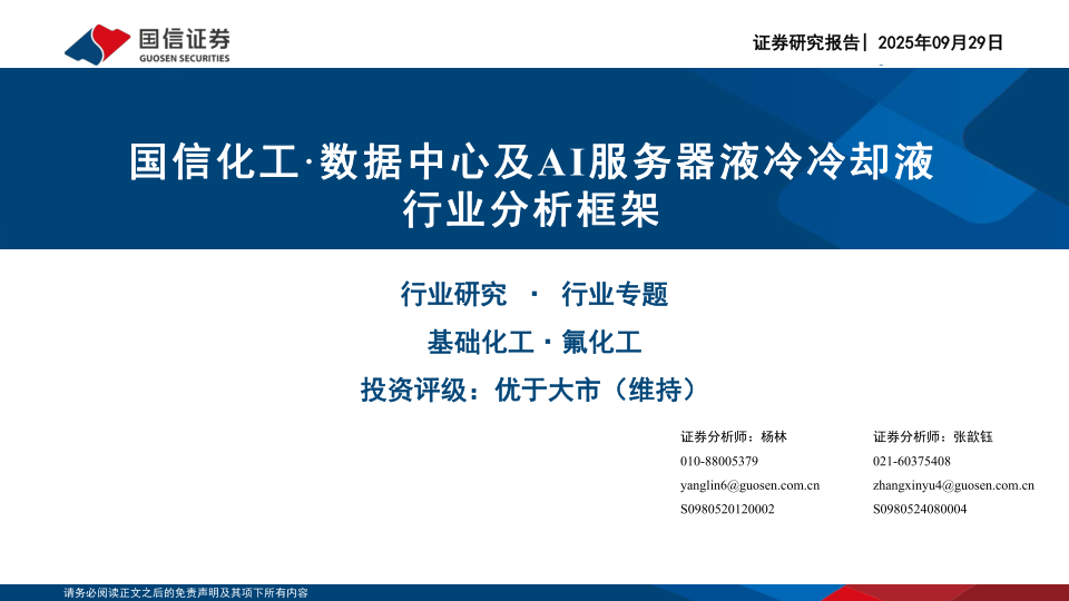 国信化工·数据中心及AI服务器液冷冷却液行业分析框架