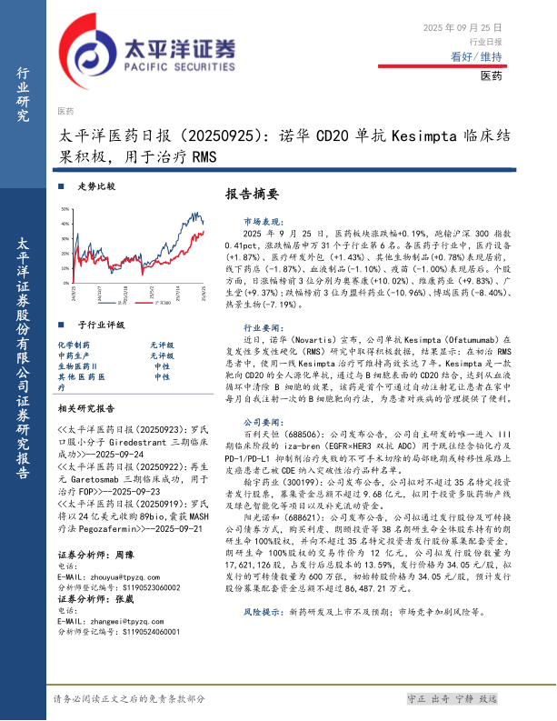 医药日报:诺华CD20单抗Kesimpta临床结果积极,用于治疗RMS