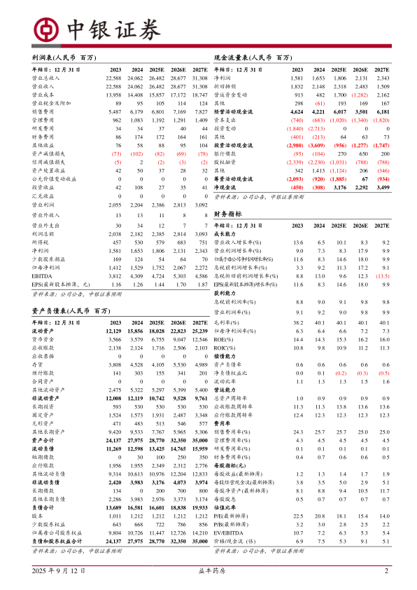 线上业务持续发力,多元化创新有望为行业带来新增量。公司加快布局O2O渠道,上半年公司O2O直营门店超过10,000家,覆盖范围包含公司线下所有主要城市,上半年,公司互联网业务实现销售收入13.55亿元(含税),其中,O2O销售收入9.44亿元(含税),B2C销售收入4.11亿元(含税)。2025年4月,商务部、国家卫生健康委、国家药监局等12部门联合印发《促进健康消费专项行动方案》,首次系统规划健康消费领域的发展路径,并将零售药店定位为“健康促进核心场景”,引导零售药店拓展健康促进、营养保健等功能。支持“互联网+”医疗服务模式创新,依托全国统一的医保信息平台,深化医保电子处方应用,推动电子处方在定点医药机构顺畅流转,满足便捷医药服务需求。药品零售行业迎来多元创新的新阶段,看好公司的长期发展。