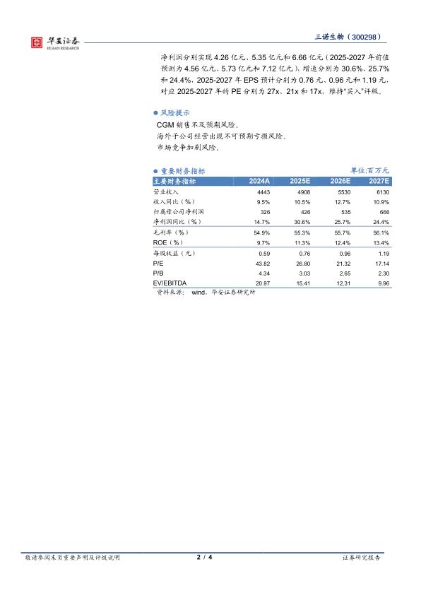 另外,公司美国市场注册持续推进,一代CGM产品目前FDA注册撤回,公司全力推进二代产品,目前预计二代CGM的主临床有望于2026年开展。