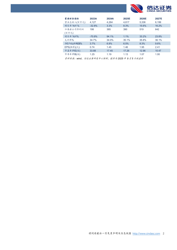 盈利预测:我们预计公司2025-2027年营业收入分别为46.17、53.36、61.99亿元,同比增速分别为8.3%、15.6%、16.2%,归母净利润分别为3.90、5.19、6.42亿元,同比增速分别为1.1%、33.2%、23.8%,对应2025年9月5日股价,PE分别为17、13、10倍。