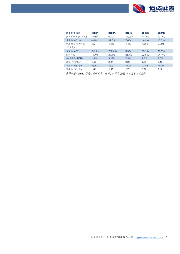 预计公司2025-2027年营业收入分别为102.67、117.60、133.69亿元,同比增速分别为7.8%、14.5%、13.7%,归母净利润分别为14.73、17.62、20.60亿元,同比增速分别为0.5%、19.7%、16.9%,对应2025年9月5日股价,PE分别为15、13、11倍。