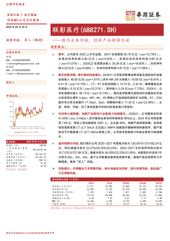 本报告对联影医疗(688271.SH)2025年上半年业绩进行了分析,维持“买入”评级。