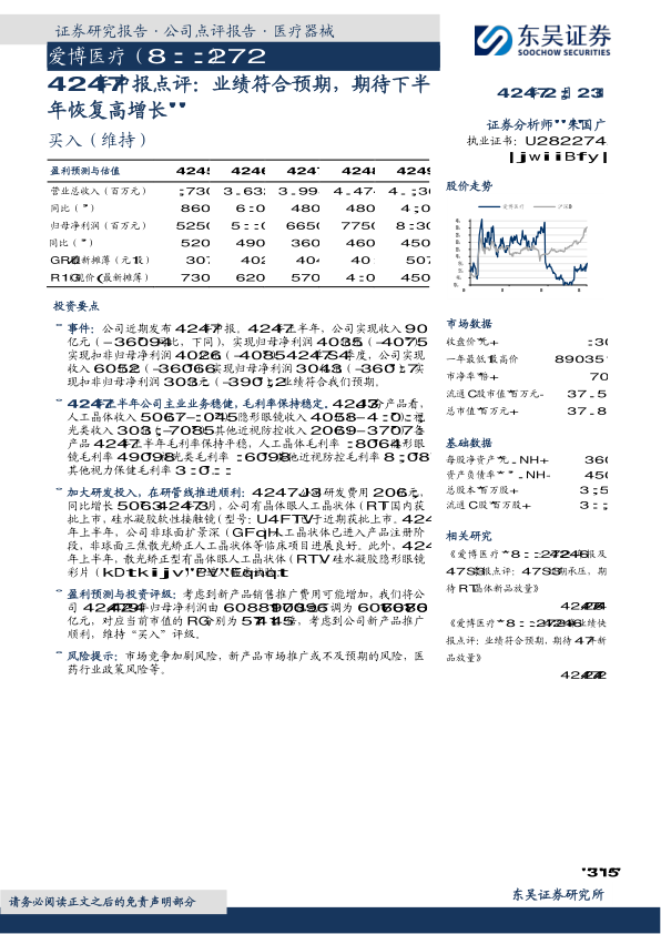 加大研发投入,在研管线推进顺利:2025H1,公司研发费用0.49亿元,同比增长3.41%,2025年1月,公司有晶体眼人工晶状体(PR)国内获批上市,硅水凝胶软性接触镜(型号:S2DRT)已于近期获批上市。2025年上半年,公司非球面扩景深(EDoF)人工晶状体已进入产品注册阶段,非球面三焦散光矫正人工晶状体等临床项目进展良好。此外,2025年上半年,散光矫正型有晶体眼人工晶状体(PRT)、硅水凝胶隐形眼镜彩片(iBright NT Color)已进入临床试验。