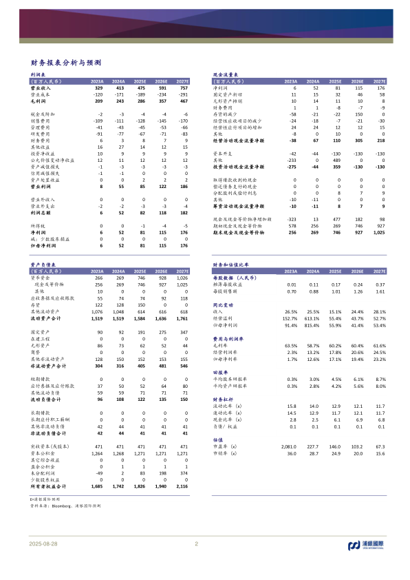 维持“买入”评级,上调目标价至人民币29.0元。我们预计2025-27E公司归母净利润达人民币8,115万/1.2亿/1.8亿元,给予公司2.4xPEG目标估值倍数,目标价人民币29.0元。