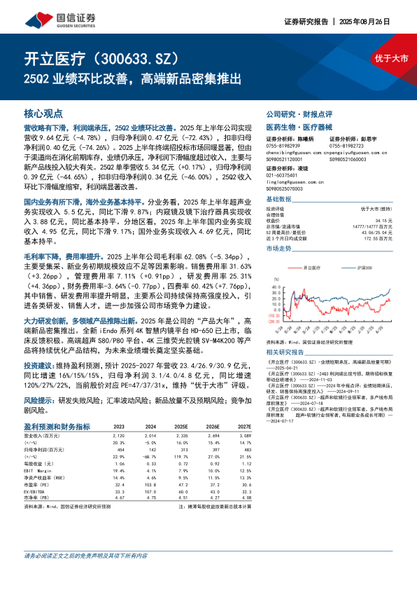 大力研发创新,多领域产品推陈出新。2025年是公司的“产品大年”,高端新品密集推出。全新iEndo系列4K智慧内镜平台HD-650已上市,临床反馈积极。高端超声S80/P80平台、4K三维荧光腔镜SV-M4K200等产品将持续优化产品结构,为未来业绩增长奠定坚实基础。