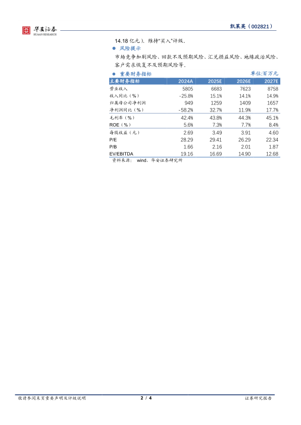 报告提示了市场竞争加剧风险、回款不及预期风险、汇兑损益风险、地缘政治风险、客户需求恢复不及预期风险等。