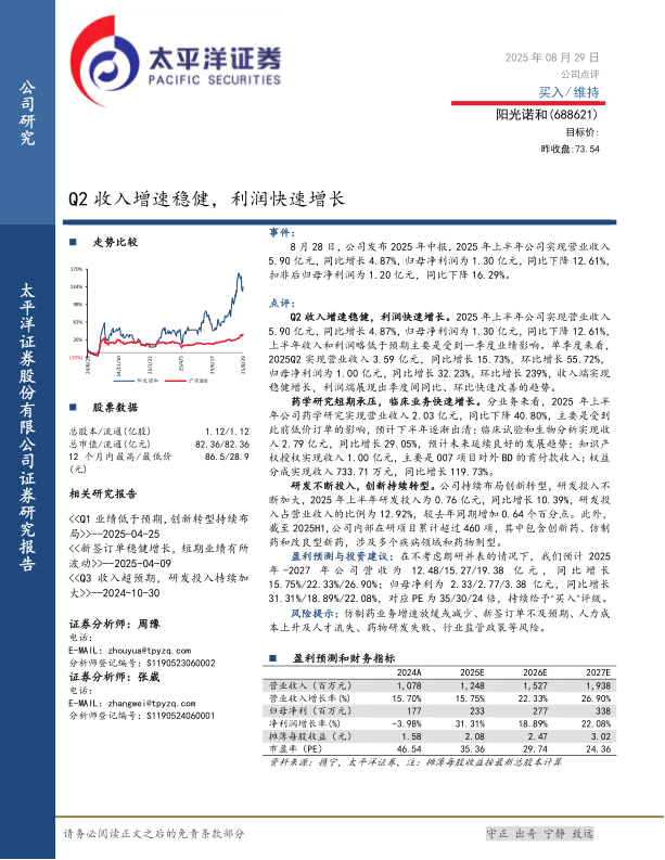 风险提示:仿制药业务增速放缓或减少、新签订单不及预期、人力成本上升及人才流失、药物研发失败、行业监管政策等风险。