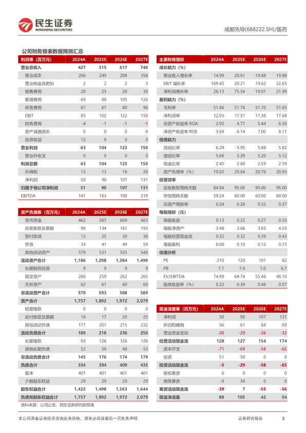 本报告对成都先导(688222.SH)2025年半年报进行了分析,核心观点如下: