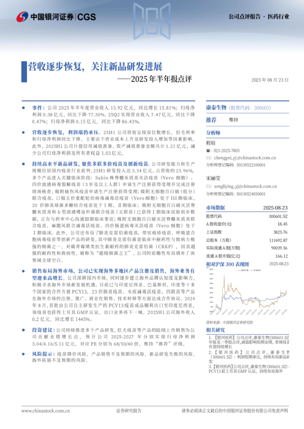 风险提示:疫苗降价风险,产品销售不及预期的风险,新品研发失败的风险,海外拓展不及预期的风险。