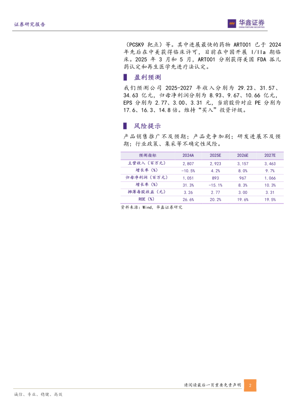 产品销售推广不及预期;产品竞争加剧;研发进展不及预期;行业政策、集采等不确定性风险。