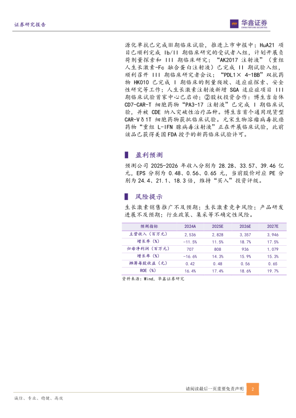 生长激素销售推广不及预期;生长激素竞争风险;产品研发进展不及预期;行业政策、集采等不确定性风险。