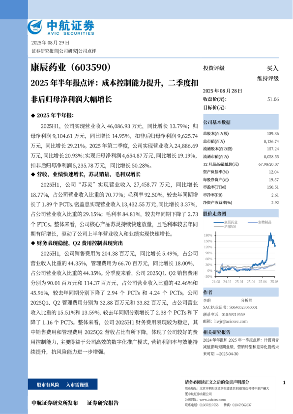 2025年半年报点评:成本控制能力提升,二季度扣非后归母净利润大幅增长
