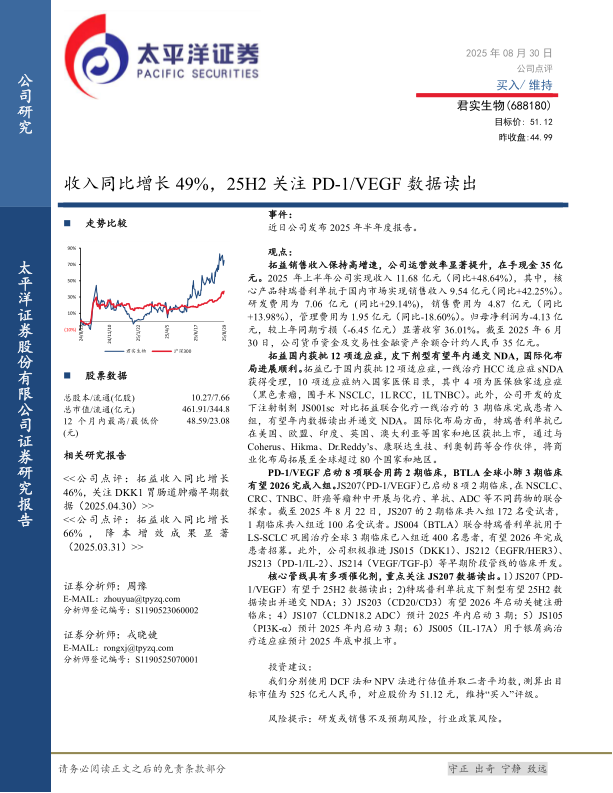 收入同比增长49%,25H2关注PD-1/VEGF数据读出