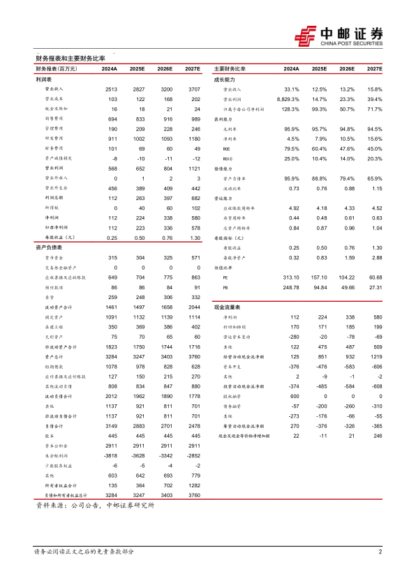 预计公司 2025-2027 年分别实现营业收入 28.27 亿元、 32 亿元和 37.07 亿元, 归母净利润 2.23 亿元、 3.36 亿元和 5.78 亿元。 首次覆盖, 给予“买入” 评级。