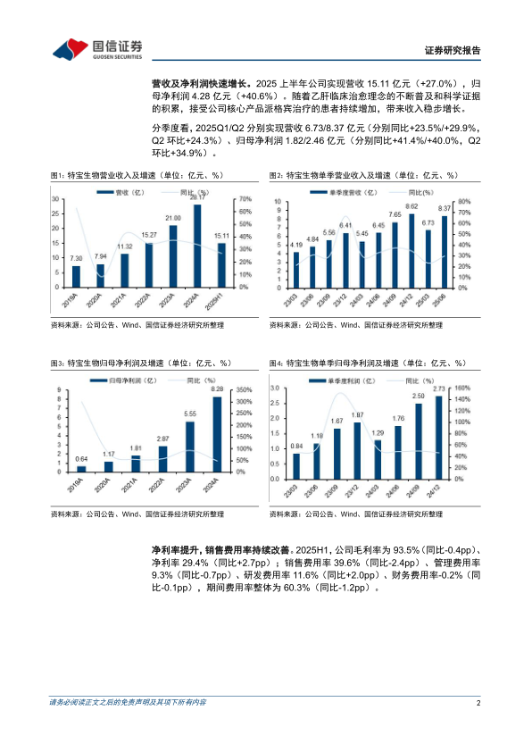 营收及净利润快速增长。2025上半年公司实现营收15.11亿元(+27.0%),归母净利润4.28亿元(+40.6%)。随着乙肝临床治愈理念的不断普及和科学证据的积累,接受公司核心产品派格宾治疗的患者持续增加,带来收入稳步增长。