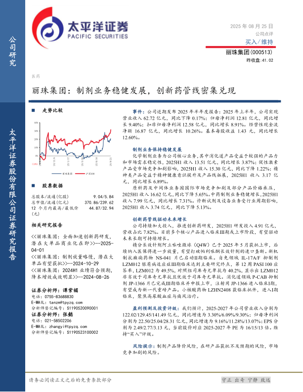 丽珠集团:制剂业务稳健发展,创新药管线密集兑现
