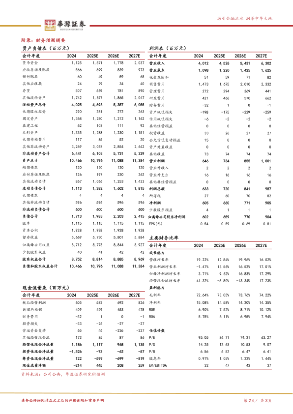 盈利预测与评级:我们预计公司2025-2027年归母净利润分别为6.6/7.7/9.0亿元,同比增速分别为9.6%/16.8%/17.3%,当前股价对应的PE分别为87/74/63倍,维
