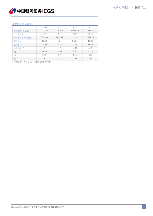 风险提示:医院诊疗用药需求减少的风险、创新产品推广进度不达预期的风险、医药销售合规的风险等。