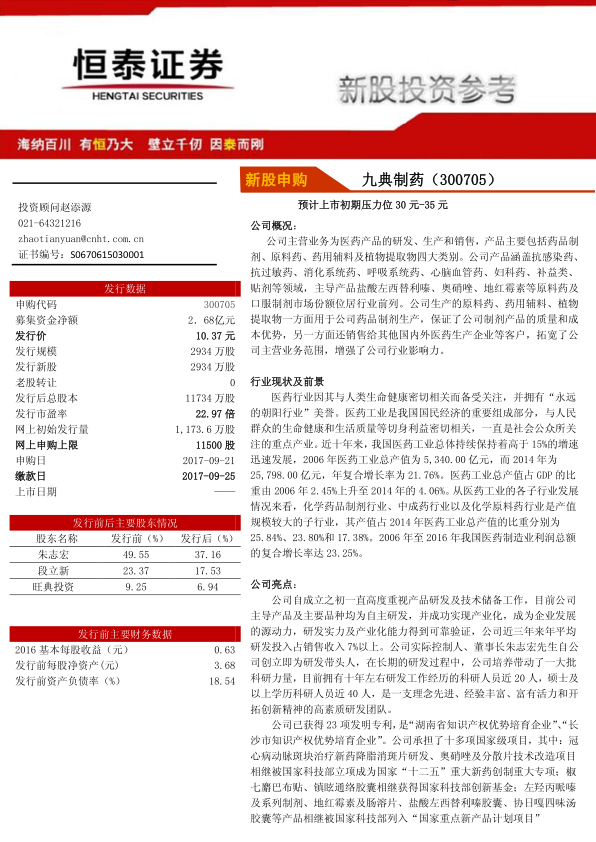 新股投资参考:九典制药