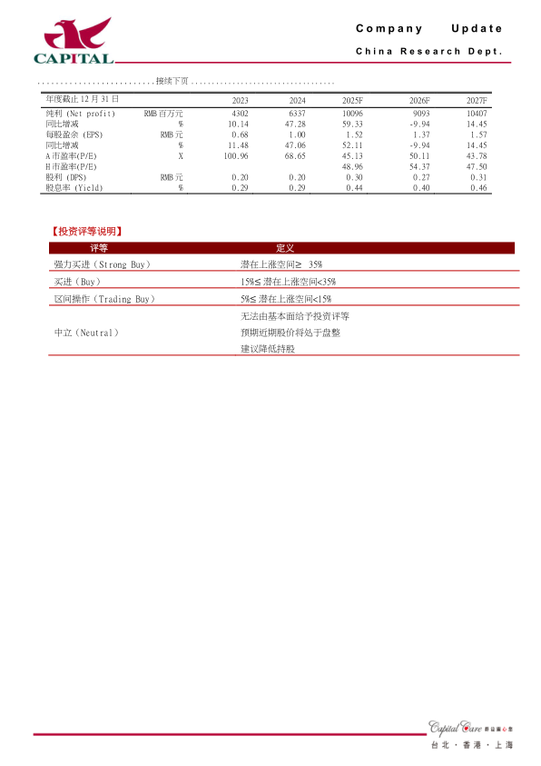 盈利预计及投资建议:考虑到公司BD交易首付款,我们相应上调盈利预测。我们预计公司2025-2027年净利润101亿元、90.9亿元、104亿元(原预计101亿元、87.5亿元、104亿元),YOY+59.3%、-9.9%、+14.5%,,EPS分别为1.52元、1.37元、1.57元,目前A估值分别为45X/54X/48X,估值合理,BD交易将继续增厚净利,创新药增长较快,股份回购及员工持股计划推出将推动A股估值回升,此外,公司H股将纳入恒生指数,9月5日收盘后实施,9月8日生效,预计被动增配H股将带动股价上涨,也将间接带动A股上涨,我们维持“买进”评级。
