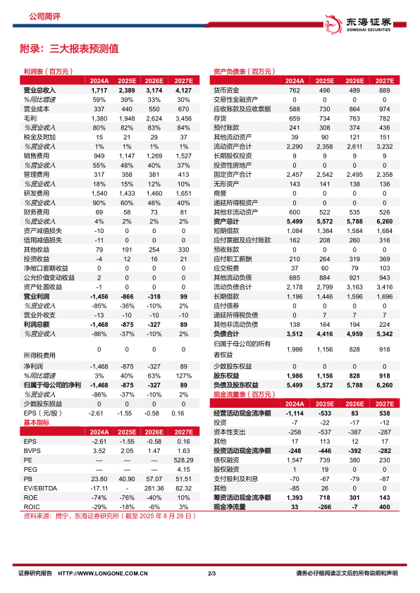 上调2025-2026年盈利预测,新增2027年盈利预测,预计公司2025-2027年实现营业收入23.89/31.74/41.27亿元,归属于母公司净利润-8.75/-3.27/0.89亿元,维持“买入”评级。