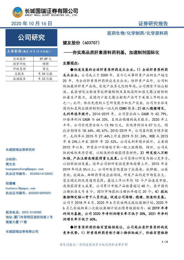 健友股份作为全球肝素原料药龙头企业,凭借其在高品质肝素原料药领域的竞争优势和加速推进的制剂国际化战略,有望在肝素原料药价格维持高位和全球低分子肝素制剂需求稳定增长的背景下,实现业绩的持续增长。同时,公司CDMO业务的潜力释放和可转债募资资金的投入,将进一步增强公司的综合竞争力,为公司未来的发展奠定坚实的基础。