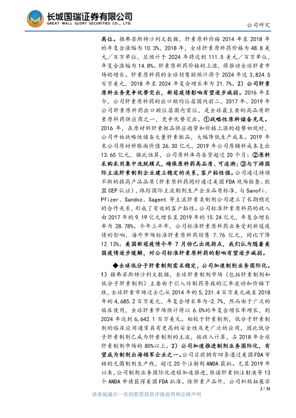 夯实高品质肝素原料药利基,加速制剂国际化