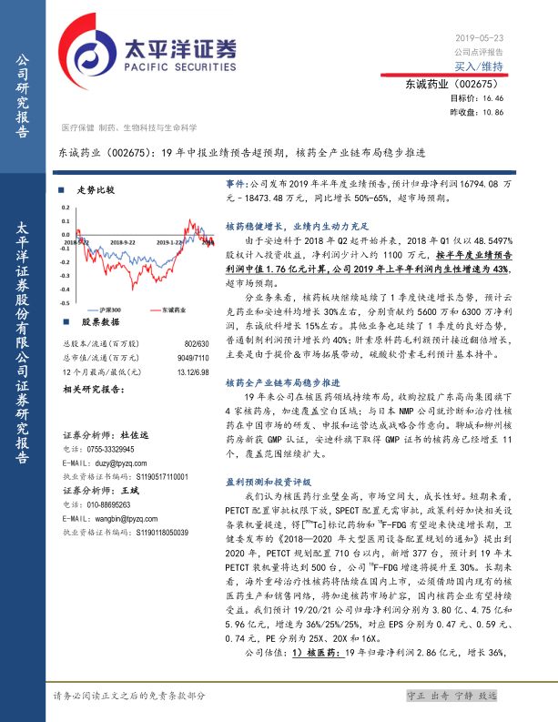 19年中报业绩预告超预期,核药全产业链布局稳步推进